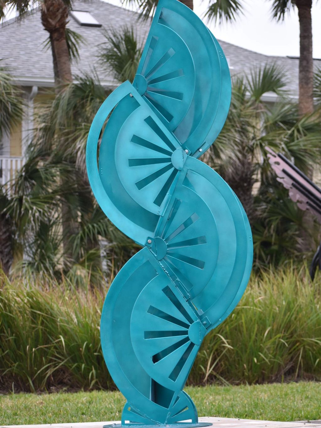 "Sea Breeze" is a large-scale public sculpture, temporarily installed at Seaside Sculpture Park in Jacksonville, Florida. Inspired by a previous gallery installation of handheld fans—historically used by women to communicate in code and maintain privacy—the sculpture was designed in multiple phases using AutoCAD, followed by CNC cutting and fabrication.